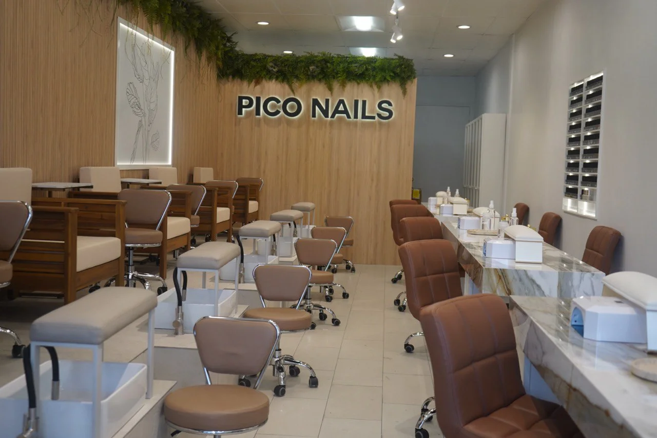 Welcome to Pico Nails salon, located in Los Angeles at the corner of West Pico Blvd and Westwood Blvd. Enter our charming salon, filled with vivid colors and the sweet scent of fresh flowers. Adorned with twinkling fairy lights and floral touches, our beautifully crafted space feels like stepping into a magical fairy tale. Our friendly and skilled nail artists await to craft breathtaking works of art for your nails, providing services like gel manicure, acrylic nails, and SPA pedicures Russian manicure. Discover Hailey Bieber nails, French tips, and other distinctive nail designs with us! Unwind in our cozy lounge armchairs as our expert technicians bring your nail visions to reality. From nail designs to acrylics, hard gel extensions, manicure, pedicures, and SPAs, we offer everything to indulge you.